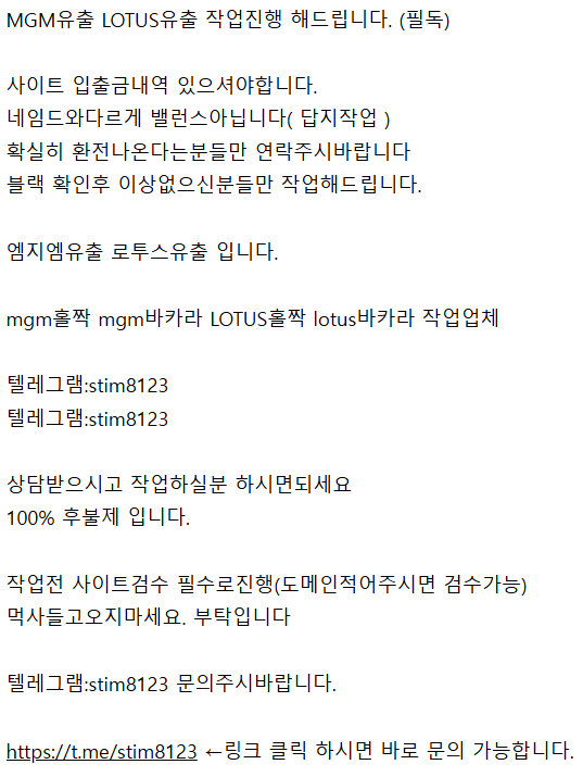 MGM유출 LOTUS유출 작업진행 해드립니다. (필독)